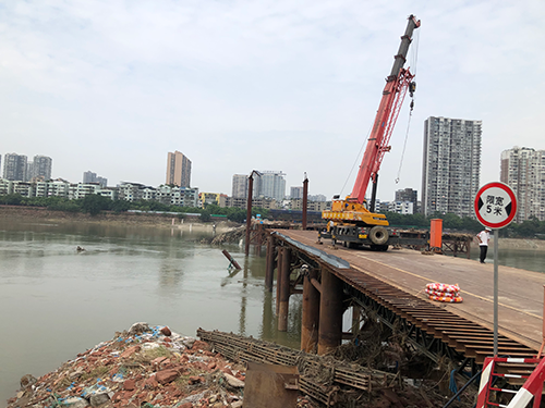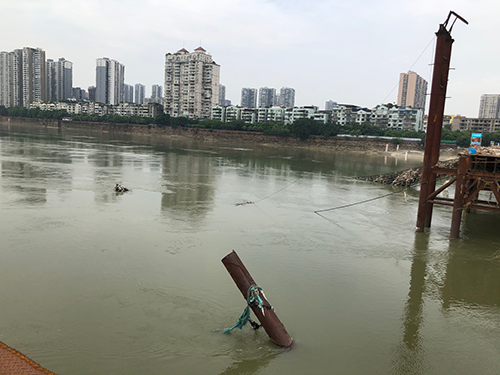 四川新闻网消息(蒲晓君)因“8.12”采砂船撞击及“8.18”特大洪灾导致了正在建设中的乐山城区致江路大桥136米长的钢栈便桥损毁沉入河道,近期因岷江水位下降,现部分沉入河道的钢栈便桥结构物(钢制材料)露出水面,给通航带来不便。