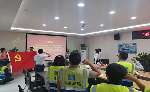 活动中,入党介绍人分别为本月新吸收的预备党员佩戴党徽,赠送《党章》,现场的党员同志们一起重温了入党誓词。