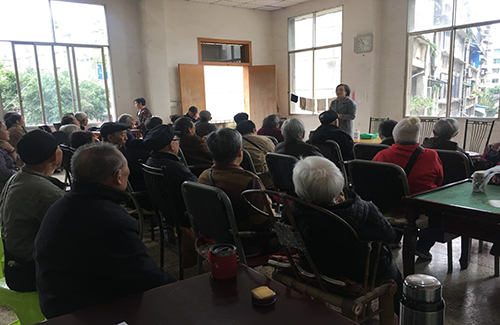 为了提高离退休老职工们的疫情防控知识,增强自我防范意识,医院院感科科长钟丽琼向大家讲解新冠肺炎的基本防控知识,并亲自示范如何进行消毒以及口罩的正确佩戴。
