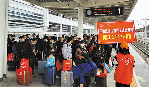我市组织返岗专列送务工人员赴浙江复工(资料图片)