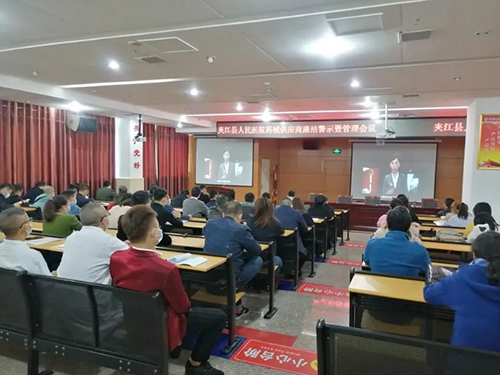 四川新闻网消息11月19日下午,夹江县人民医院组织召开了“夹江县人民医院药械供应商廉洁警示暨管理工作会”。医院党委书记宋雪松、院长吴强、副院长黄瑾、周骏等院领导出席了会议,药剂科、设备科负责人、药品及卫材器械采购员和库管员及与医院合作的各药械供应商代表共100余人参加了本次会议。会议由医院党委副书记段应强主持。