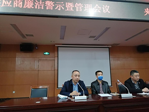 观看结束后,段应强副书记对参加会议的医院药、械管理重点岗位人员和100多名供应商进行了廉洁警示集体约谈。约谈中,段应强副书记要求与会人员要立足当前医药购销领域新形势,结合卫生健康行业领域正在开展的“扫黑除恶专项斗争和行业乱象整治”和“突出问题专项整治”工作,一是要认清形势提高认识,切实筑牢思想防线;二是要强化监督从严管理,认真整改突出问题;三是要加强管理,全面规范各项经营活动。