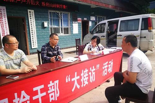 峨边彝族自治县纪检监察干部在五渡镇胜利村“摆摊设点”收集群众问题和诉求(张芮 摄)
