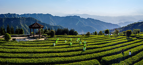 由乐山市纪委监委和共青团乐山市委共同组织青年干部到马边彝族自治县柏香村茶园开展脱贫攻坚志愿活动(何为 摄)