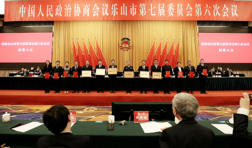 四川新闻网消息(宋德福/文 罗莉/图)1月8日下午4点,在喜庆祥和的气氛、悦心欢快的乐曲声中,政协乐山市七届六次全体会议闭幕大会上,来自各界别和有关部门的14名市政协委员和相关同志,代表受表扬的30件优秀提案、16个提案工作先进单位和32名提案工作先进个人,从市委、市政府、市人大、市政协领导的手中,隆重接过鲜艳夺目的奖牌和大红的奖状。