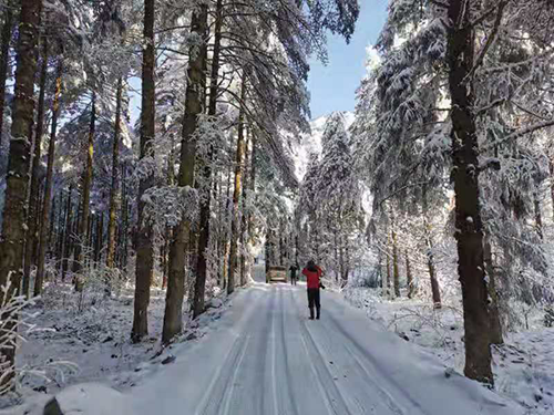 在冰雪中静下来闭上眼,听松林里的飞鸟和自然物语,聆听大地的呼吸,聆听雪落的声音,纯粹、甘甜,在大瓦山的冰雪里走走,一身尘埃清扫得干干净净。若有幸遇到大瓦山冬日的太阳,三千多米高的山体金光闪闪,天幕蓝如宝石,轻云翻滚山岗,会忘记语言和疼痛。世间的语言太过匮乏,不足以描述雪中的心情。