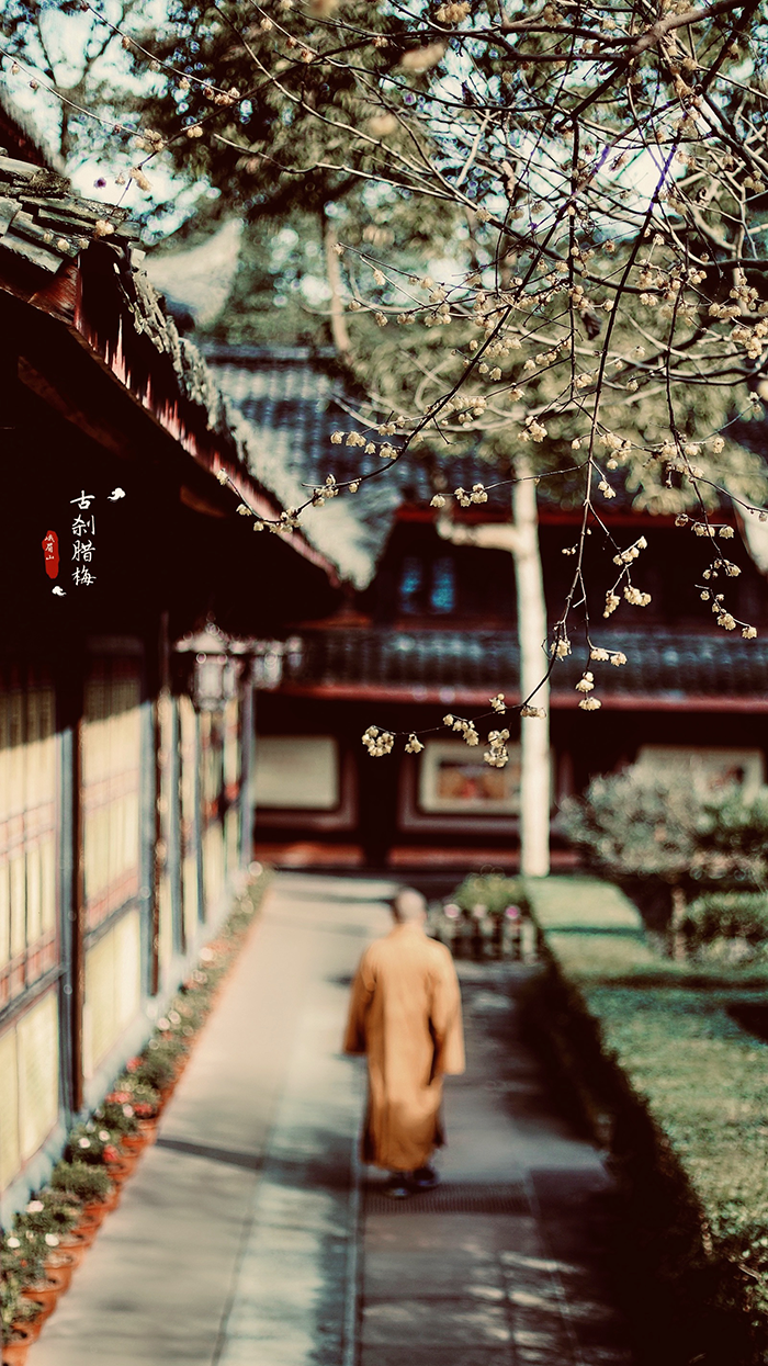 沁人心脾的花香弥漫古寺,引得游人纷纷驻足。时而,喜好品茗者,还会冲上一壶飘香四溢的峨眉山茶,醉入腊梅花下细品。