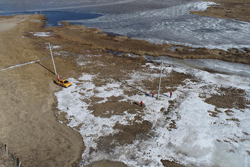 1月28日,炉霍县更知乡,冰冻的卡萨湖畔一架无人机发出嗡嗡的声音。它在输电运检室任庆的操控下,努力克服高原低气压对飞机上升力的影响,沿着湖边的山体一路向上。这些飞手们已完成对炉霍县190千米线路的飞巡,发现隐患缺陷1861处。