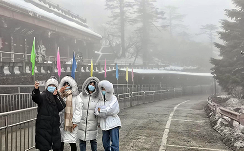 而除了金顶,峨眉山接引殿等高山区域也被圣洁的雪花覆盖,到处粉妆玉砌,皓然一色。新春之际邂逅瑞雪,游客们惊喜不已,纷纷拍照留恋,直呼“牛气冲天”!。(图据峨眉山景区)