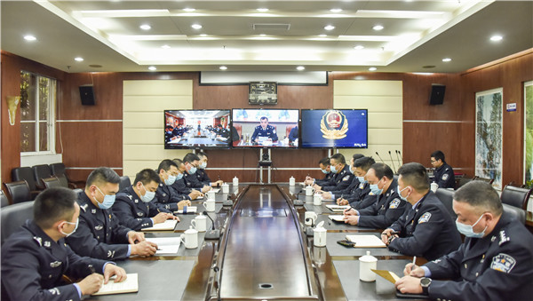 会议以电视电话会议形式开至各区县局。市局党委副书记、常务副局长周强主持会议。市局在家党委班子成员,驻市局纪检监察组和市局各部门主要负责同志在主会场参加会议。各县(市、区)、永和、景区公安(分)局在家党委班子成员,各室、队、所主要负责同志在各分会场参加会议。