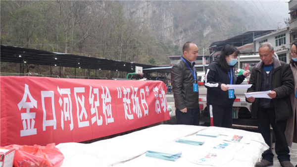 区纪委监委干部在金河镇场镇宣传党风廉政建设工作成效