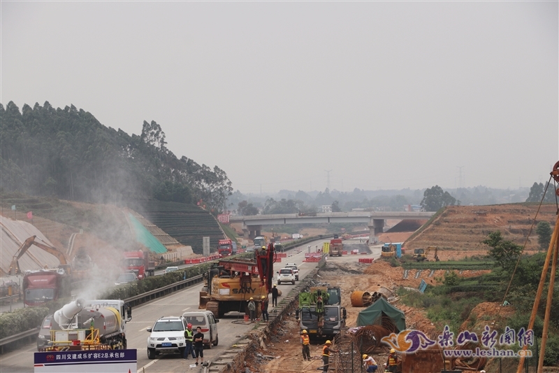 成乐高速扩容棉竹互通至眉山互通主线长51公里,其中乐山段约32公里,由双向4车道扩建为8车道,将在夹江县甘江镇新建定惠收费站,为“五进七出”12车道;改建原有的夹江收费站,向乐山方向平移1公里,由以前的“两进三出”5车道变为“七进八出”15车道。目前项目主要集中在夹江段施工,待半幅施工完成后,将转换到另外半幅进行封闭施工,预计在6月底,主线左右幅的路基施工将全部完成。