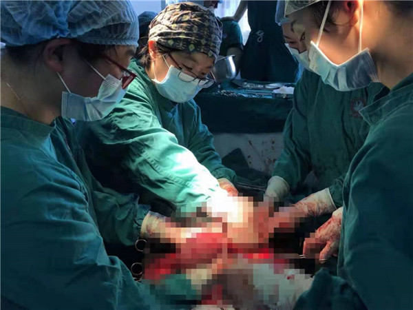 “凶险型前置胎盘一般是指以前有过剖宫产史,本次妊娠胎盘附着于瘢痕处(子宫下段),为前置胎盘,伴或不伴胎盘植入。”许洪梅介绍,伴有植入可能胎盘血管穿透子宫,甚至与膀胱、肠管等周围脏器发生粘连。因为孕期胎盘要给胎儿提供养分,就需要不停吸收营养,它的血管就像树根一样在孕妇上次剖宫产瘢痕的薄弱位置容易植入进去。“张梅属于中央型前置胎盘并伴有植入,胎盘位置很低,堵住了宫颈口并伴宫颈明显肥大增粗,这种情况是很凶险危急的,再次剖宫产时,可能导致不易控制的大出血,以及子宫、膀胱和肠道的损伤,甚至危及孕产妇生命,尤其是她伴有胎盘植入,是产科的危急重症,剖宫产术中处理很棘手。”