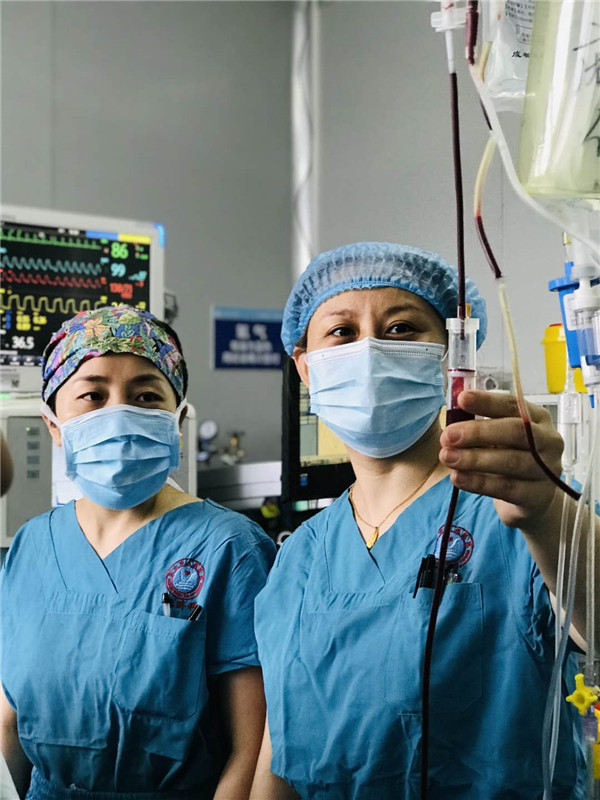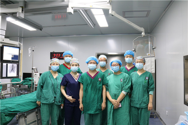 “不管是需要做髂内动脉球囊阻断术还是腹主动脉球囊阻断术,我们血管外科都将义无反顾全力支持。”血管外科副主任医师俞慎林的鼎力相帮给了产科医生十足的信心。张梅手术当天,血管外科医生先在介入室用穿刺针经皮穿刺血管,用导丝将球囊预先放置在病人腹主动脉中,然后再将她转运到手术室;麻醉医师及手术室团队为患者提前进行深静脉穿刺及动脉穿刺保证术中监测,并提前联系输血科保证手术当天有充足的血源,提前预定好重症监护室床位;儿科医生提前到达手术室做好新生儿抢救准备;在产科医生取出胎儿的一瞬间,血管外科的医生马上通过注水充盈预置的球囊,堵住子宫上面的主要血管血供,减少出血,保证剖宫产术中手术视野的清晰,为产科医生缝合止血、剔除植入残留胎盘争取了更足充足的时间;患者术后转入重症监护室监护,病情平稳后回到产科病房,产科医护团队需要对患者术后进行精细化的的管理,包括产后出血量的观察,介入术后足背动脉波动情况,术后预防性抗凝等情况的观察。