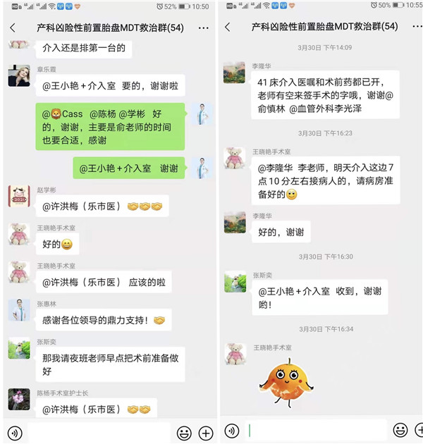 “我们还建立了凶险性前置胎盘MDT救治团队微信群,术前、术后随时保持沟通。”许洪梅介绍,比如术前需要做那些准备,血管介入后可能出现的并发症有哪些,术后要观察哪些指标,腹主动脉搏动的情况等等都需要及时汇报在群里。