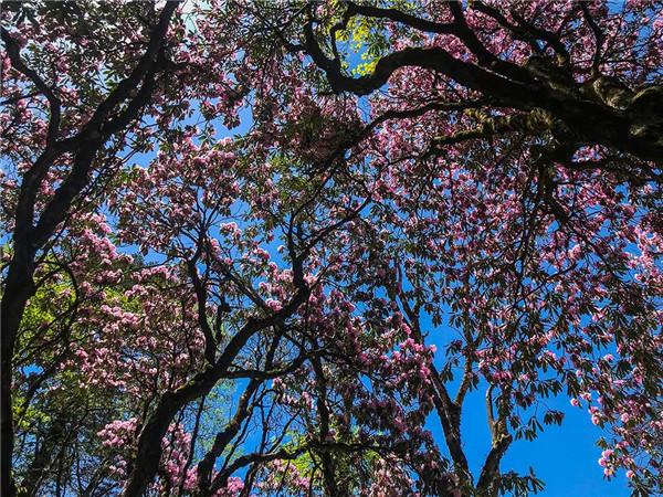峨眉山景区全新推出“一径芳华”、“十里花境”、“百花深处”三条赏花线路和千佛禅院、万佛钟声、襄花谷、山客居四个观景点位,为游客带来前所未有的赏花体验。此外景区还准备了丰富的活动,“寻找杜鹃种植体验官”、“抖出新花样”、“探寻万佛钟声”,还有剧本游、祈福游、科普游、汉服打卡游等等。(峨眉山景区供图)