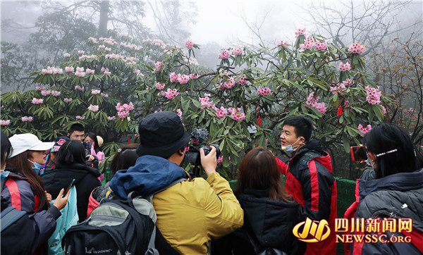 据了解,峨眉山终日云雾笼罩,细雨连绵,极适宜杜鹃生长繁殖,形成了类型多样的原始杜鹃林景观。目前,已知全山分布有杜鹃花30种左右,特别是海拔2000米以上的高山区,荟萃了全山近2/3的品种,于4月起先后绽蕾吐蕊,从山顶一泻而下,蔚为壮观。