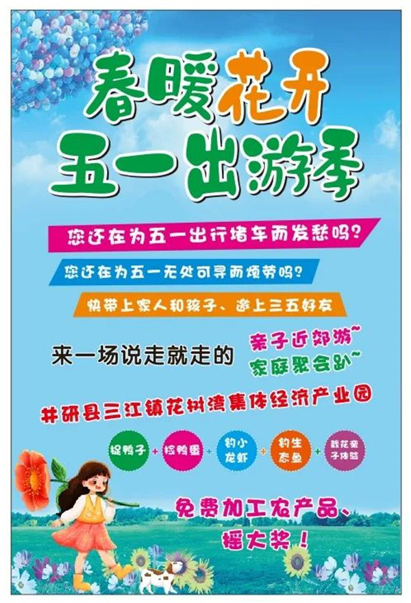 四川新闻网消息(胡锐杰)五一节即将来临,“去哪儿玩”成为人们假期计划的重要议程。乐山市井研县三江镇解放村带来了“近郊亲子游”方案。5月1日至5日,三江镇解放村花树湾生态采摘·休闲垂钓体验区将持续举办以“体农事艰辛,感农业特色,承农业文化”为主题的精彩活动!捉鸭子,捡鸭蛋,钓小龙虾、栽花亲子体验......玩法多种多样!