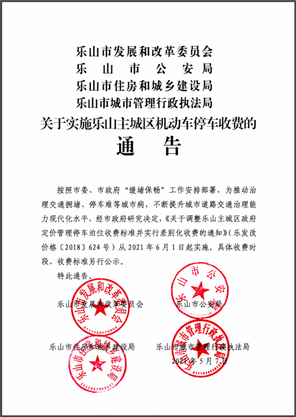 四川新闻网消息(蒲晓君)5月7日,乐山市发展改革委、市公安局、市住房城乡建设局和市城管执法局联合发布通告,启动主城区公共停车收费管理工作,并公布了《乐山主城区机动车停车收费标准》,首批831个临时占道公共停车泊位于5月10日起免费试运营,6月1日起正式纳入收费管理。