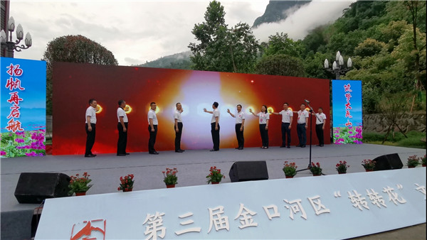 四川新闻网消息(李薪 摄影报道)6月3日,第三届金口河区 “转转花”文化旅游节启动仪式在大瓦山下举行。此次文化旅游节以“扬帆再启航·筑梦大瓦山”为主题,由乐山市委宣传部、市文广旅游局、金口河区委、区人民政府和乐山日报社主办,金口河区委宣传部和区文体旅游局承办。