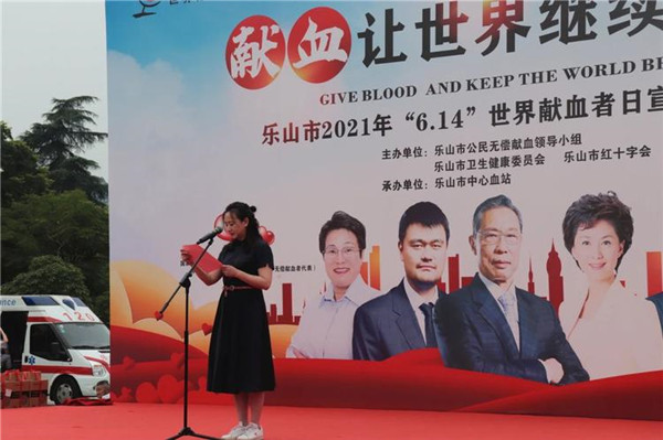 四川新闻网消息 用行动表达大爱无私,用热血延续生命之光。6月11日,在第18个世界献血者日来临之际,由乐山市公民献血领导小组、乐山市卫健委、乐山市红十字会主办,乐山市中心血站承办的2021年“6.14”世界献血者日“献血,让世界继续跳动”公益宣传活动在新广场顺利举。400名“2018-2019年度全国无偿献血奉献奖”获奖代表、高校志愿者及各单位代表参加了活动。