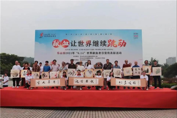 活动现场志愿者和高校组织的团队带来的精彩表演,乐山嘉州画院的画家们还在现场作画,并向获奖者代表赠画,表达对无偿献血的支持。