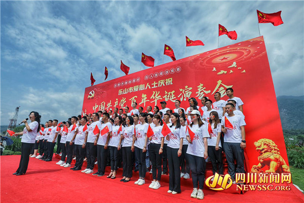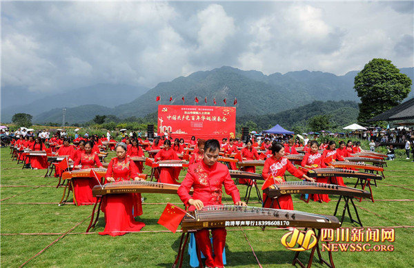 四川新闻网消息(记者 李举涛 摄影报道)6月26日,秀美峨眉山麓,红歌嘹亮,百筝齐鸣。一场由乐山市爱心人士精心筹备的庆祝建党100周年演奏会,在峨眉山市高桥镇精彩上演。