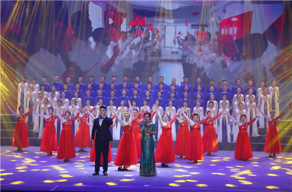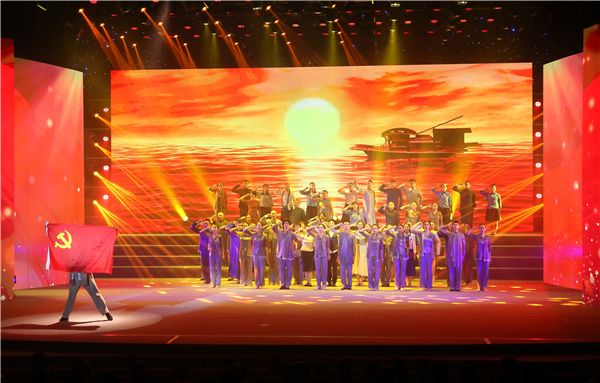 尾声环节,演员和全场观众齐声高唱《没有共产党就没有新中国》,深情表达乐山儿女坚定不移听党话、矢志不渝跟党走的坚定信念和奋斗情怀,凝聚起开启全面建设社会主义现代化乐山新征程的磅礴力量。