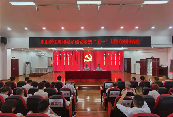当天,乐山市住房城乡建设系统还举行了“七一”专题党课报告会。会上,乐山市住房城乡建设局党组书记、局长杜驰以《学党史 悟思想 办实事 开新局 以昂扬姿态 奋力推动全市住房城乡建设事业再上新台阶》为主题,结合自身学习心得,联系住建工作实际,为住建系统全体党员干部职工上了一堂生动的党课。