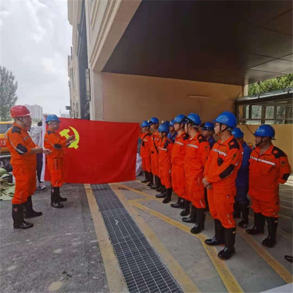 党旗竖起来、党徽亮出来、党员冲上前,提安全要求、布任务措施,落分组责任,现场指挥有条不紊,党员“领命”回答响亮。