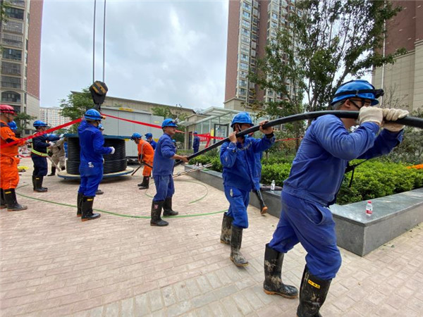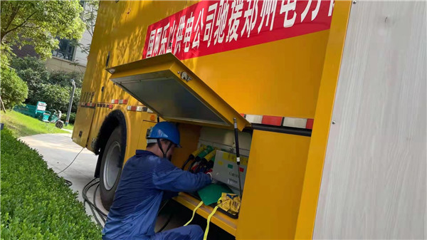 在东原晴天见小区,抢修队员在现场看到该小区车库积水严重,很多供电设施依旧被淹水中,根本具备正常通电的条件。考虑到居民用电的迫切性,抢修人员决定用发电机和临时线路,为该小区进行临时供电。等车库水抽干后,立即进行抢修,全面恢复正常供电。
