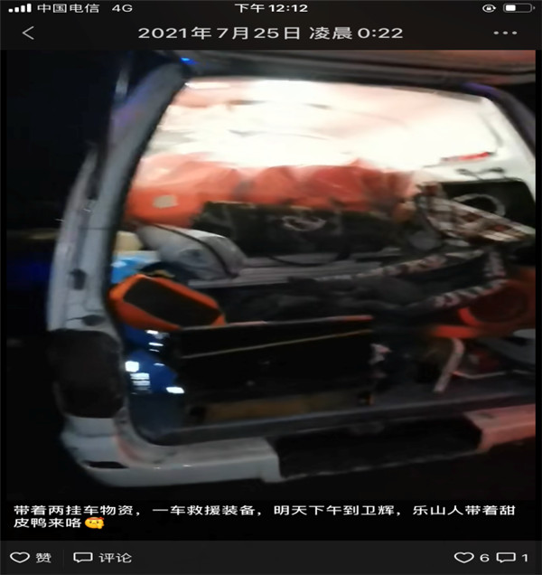 7月31日,22岁的小伙杨智浩从河南省卫辉市回到乐山的第二天,看着自己在某短视频平台的一条“救援”动态下不断涌入的评论,不禁热泪盈眶。感恩的卫辉人民让杨智浩再次体会到完成救援任务后,内心的那份成就感:“能真正地帮助到灾区人民,让他们脱离危险,我非常开心,看到卫辉群众对我们的肯定和不舍,让我觉得这一周的苦和累都值得。”