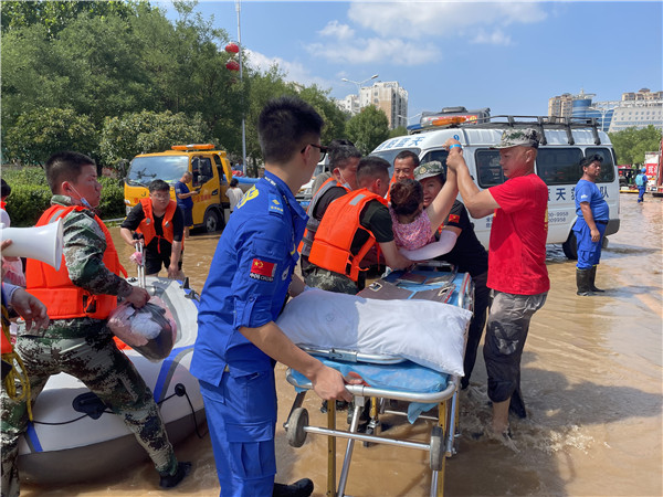 经过短暂的休整,26日上午10时许,杨智浩又和队员们沿着唐庄镇积水严重的街道进行人员转移工作,重点对老人、伤员、行动不便人员开展应急救援,确保伤员及时得到医疗救治,保障灾区群众生命安全。除了转移街道居民,他们还负责将当地妇幼保健院的病人转移到新乡医院安置。“当时医院停电停水,如果不转移病人,将严重影响病人的治疗,而新乡的洪水已经退去,已经恢复秩序。”杨智浩回忆道。