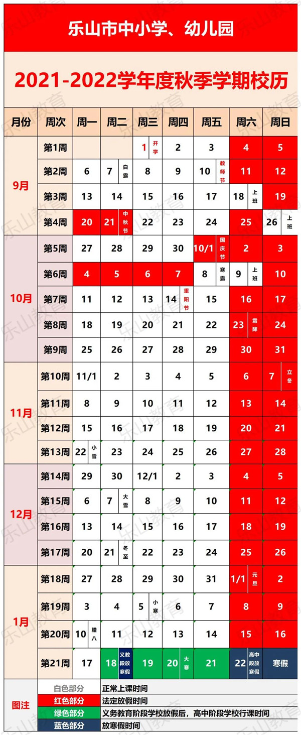 乐山市中小学和幼儿园即将开学,新学期起止时间是什么时候?一共有多少周?节假日如何安排?为了方便广大学生和家长朋友提前做好学习和工作安排,近日,乐山市教育局发布新学期校历供大家参考。