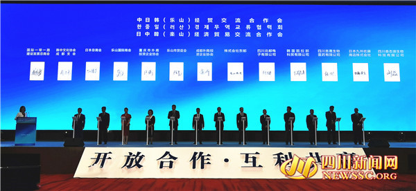 会议还举行了签约仪式,四川森态源生物科技有限公司与日本九州佐藤商店株式会社、四川吉晟生物医药有限公司与韩国因拉那科贸有限公司、四川北都电子有限公司与株式会社东都签约贸易类合同3个,涉及金额5840万美元,包括农产品、工业产品、服务业产品。成都外商投资企业协会、重庆市外商投资企业协会、乐山市贸促会签署三方协议。日本总商会、韩中文化协会成都支会、国际一带一路建设发展总商会分别与乐山国际商会签署战略合作协议,合作方将发挥各自优势,开展贸易和投资合作,促进中日韩双方会员企业在商业、工业、矿业、农业、旅游、服务业和社会文化交流等领域的经贸交流与合作。