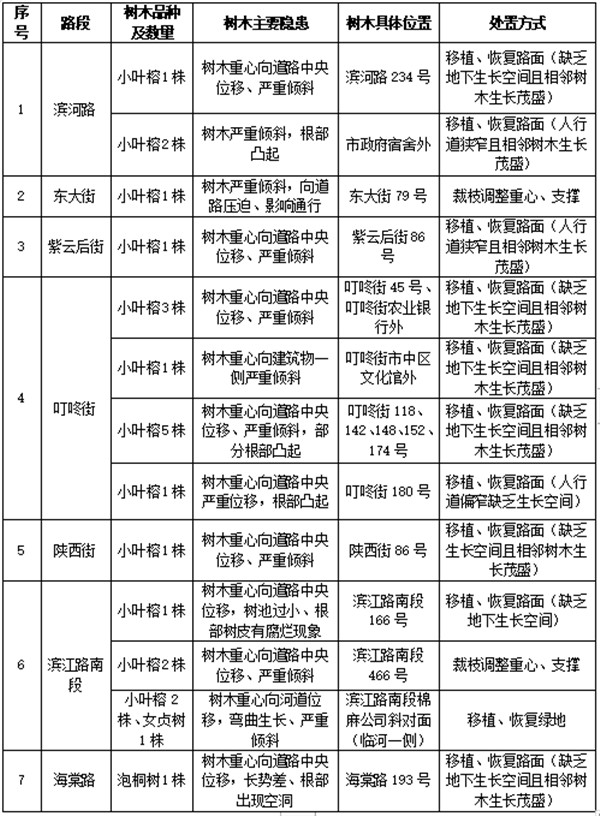 据了解,老城区部分浅根系行道树因距离建筑物近、人行道较窄生长空间受限等因素,存在不同程度的倾斜生长,每年受大风大雨天气的影响易发生倒伏,存在危及附近群众、过往行人(车)生命财产安全的可能性。