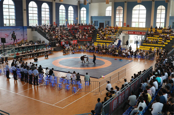 复赛决出的前八名选手按照抽签的顺序两两作对开展较量,双手紧抓对手的腰带,用肩顶着肩,采用绊、挑、蹩、蹦、抱、摔、拉、转身、进胯等多种技巧,时而进攻,时而防守,时而僵持不下,斗智斗勇,卯足了劲,把对方摔倒。“西拉!西拉”(彝语意为拉过来),观众们一声声热情的呐喊声响彻体育馆。