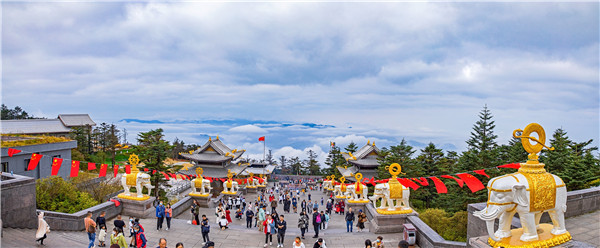 犍为文庙推出拓画体验、国学讲堂、非遗手工剪纸、写生采风、古琴茶艺表演等体验活动。沙湾沫若戏剧文创园推出《乐游嘉学全景课堂》《沫若大舞台》和“欢度国庆嘉年华”夜市,游客入园可以充分体验夹江年画、沐川竹编 、闲梁面塑、轸溪手工花等非物质文化遗产,不仅有“看头”,还有“玩头”。峨眉山景区推出《只有峨眉山》“快闪”秀,身穿夸张云朵造型的演员迎客而来,市民游客在日出云海的金顶与“云朵”共舞。市中区水口镇金坝湿地公园、大渡河风景道等田园风光吸引众多游客前往打卡。(图据各相关景区)