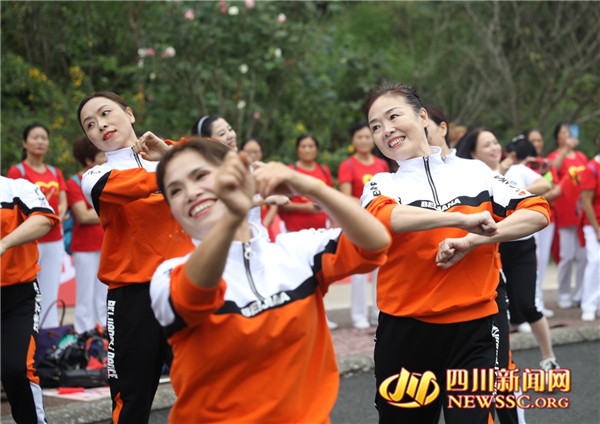 四川新闻网消息(记者 李举涛 摄影报道)10月14日,传统重阳节,乐山市举行庆祝建党100周年暨第六届重阳节老年体育健身嘉年华活动。上千名老人欢聚嘉州绿心公园,体育健身展风采,共庆属于自己的节日。