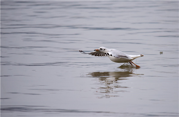 红嘴鸥的嘴和脚皆呈红色,身体大部分的羽毛是白色,尾羽黑色,它们总是相随而出,结伴而归。每年天气一转凉,就会有成百上千的红嘴鸥飞来乐山。它们除了受到普通市民和游客的欢迎外,更是摄影家和爱鸟人士镜头中的“宠儿”。