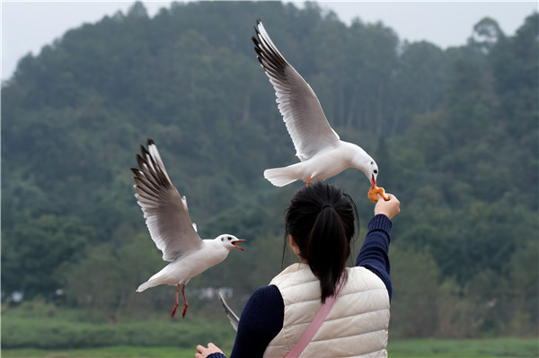 据了解,红嘴鸥是国家“三有”保护动物,即国家保护的有重要生态、科学、社会价值的陆生野生动物。大多生活在江河、湖泊、海湾等,主要进食鱼、虾、昆虫、水生植物,以及人们投喂的鸥粮等。每年秋冬季节,红嘴鸥会南下到我国南方地区越冬。(图片来源李勇摄)