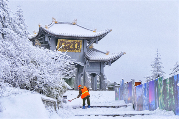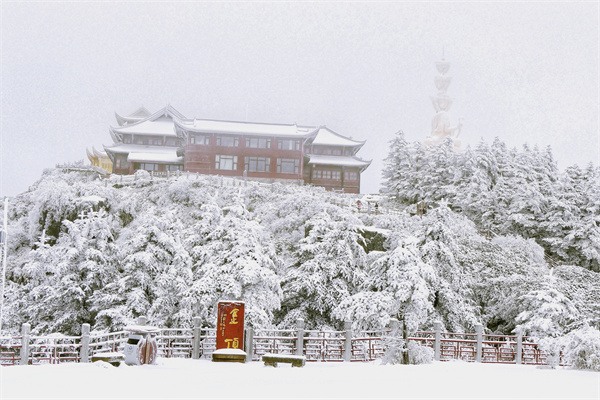 四川新闻网消息(记者 李举涛)11月22日,农历二十四节气中的小雪。受冷空气影响,海拔3079米的峨眉山金顶银装素裹,分外妖娆,尽显南国冰雪胜景。