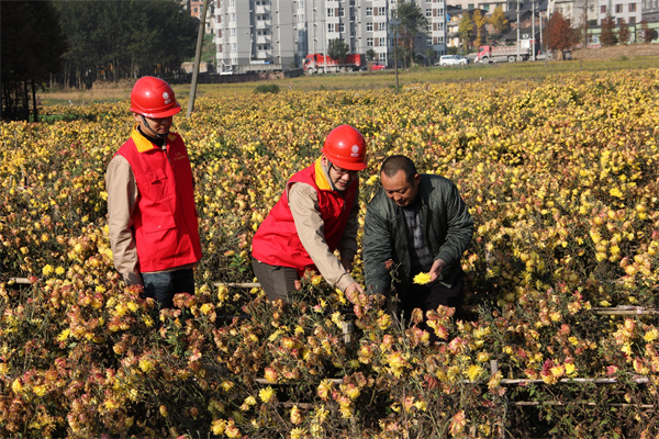 前期,通过对龙池镇场镇实施电网改造后,南山村附近电网稳定性得到提升,用电环境得到改善,龙池南山村菊花坊合作社搭上“绿色快车”逐渐扩大规模。2020年初,菊花种植面积仅仅只有10余亩,年产菊花茶仅2000余斤,在2021年种植规模就扩大到50余亩,新投产果蔬烘干机2台,用电负荷由之前35千瓦增加到120千瓦。随着后期产能的扩大,目前从公变台区接入电源已不能满足其负荷需求,需要增容改造新立专变。当天,党员服务队队员和龙池供电服务站员工一起,对接入点电源、现运行的用电设备进行测算和评估后,为其提供了经济合理的增容方案。