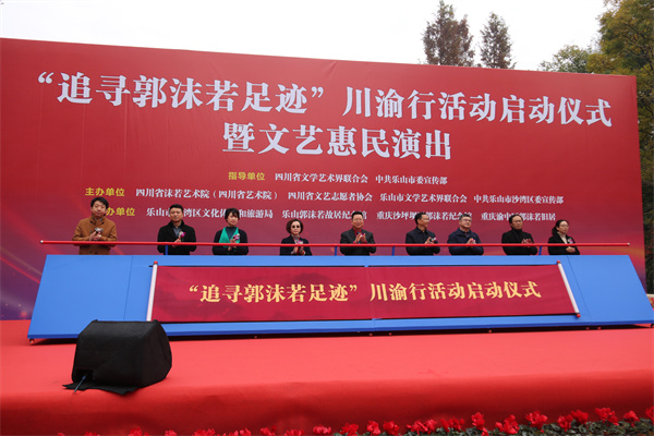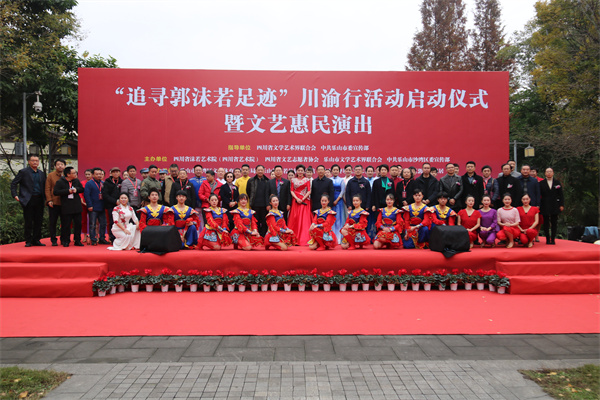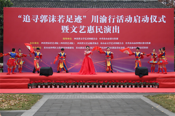 四川新闻网消息 11月30日,由四川省文联和乐山市委宣传部指导,四川省沫若艺术院、四川省文艺志愿者协会、乐山市文联、沙湾区委宣传部主办,沙湾区文体旅游局、乐山郭沫若故居纪念馆、重庆渝中区郭沫若旧居、重庆沙坪坝区郭沫若纪念馆承办的“追寻郭沫若足迹”川渝行活动启动仪式暨文艺惠民演出在乐山市沙湾区举行,活动围绕举旗帜、聚民心、育新人、兴文化、展形象的使命任务,促进成渝双城文化交流。