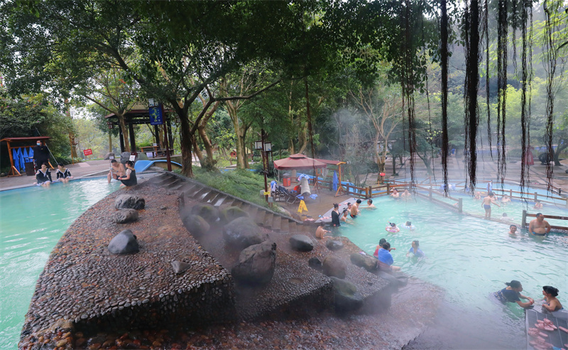 山上冰雪奇缘,山下温泉宜人。在峨眉山灵秀温泉欢乐谷,不少游客在热气腾腾的温泉里,戏水撒欢,甚是惬意。据介绍,冰雪温泉节期间,这里将开展“灵秀温泉快乐泳远”文创泳衣设计征集大赛,打造具有峨眉山元素的特色文创泳装产品,最高奖项达8000元。
