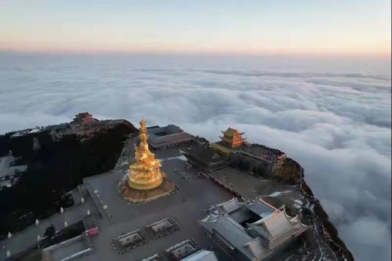 四川新闻网消息 2022年1月1日一大早,海拔3079米的峨眉山金顶,新年第一缕阳光如约而至。30870名来自全国各地的游客齐聚峨眉山景区赏雪、观景、游玩、祈福,共度暖阳当空的新年第一天。