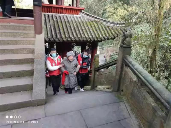 在峨眉山景区内,一位老人拉着“心连心”旅游服务岗工作人员的手不断说着感谢。这位老人已是85岁高龄,距离她上次来到峨眉山景区已经过去了40年,如今她重游仙山,却因年岁较大,登山困难。“心连心”旅游服务人员全程搀扶,帮助老人完成了心愿。