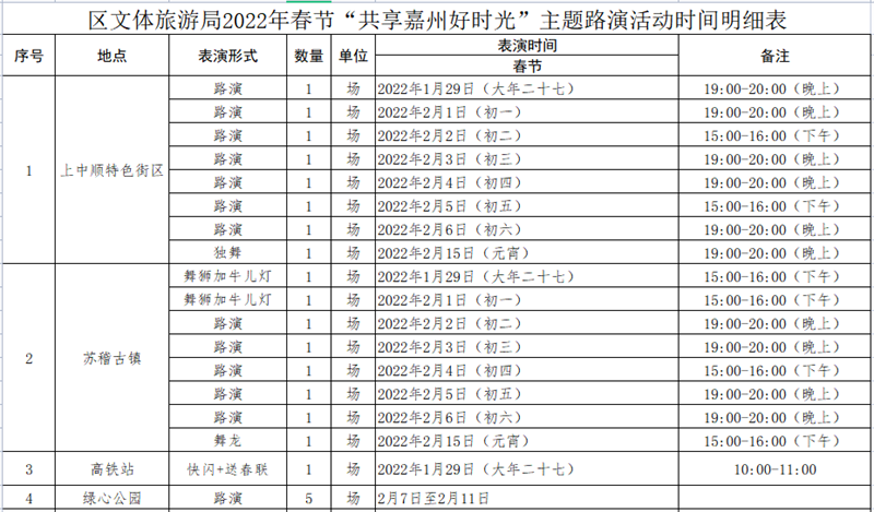 1月29日,2月1日—2月6日,2月15日;在上中顺特色街区将有狮舞、牛儿灯、路演、特色独舞等精彩表演。