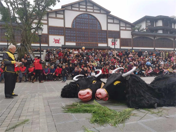 春节期间,舞狮、舞龙、牛儿灯、鱼鹰展演、民俗文化演出烘托出最热闹的春节、最浓的年味。初一至初七,每天下午2点至3点,苏稽街社区文艺队、万顺村文艺队等7个文艺队在苏稽古镇老戏台轮番登场,为市民游客带来精彩纷呈的文艺节目。初一至初六,每天下午3点,青峨鱼鹰表演队在峨眉河古镇流域进行鱼鹰展演,这种古老传统的捕鱼方式让人深感古镇渔家风情的魅力。