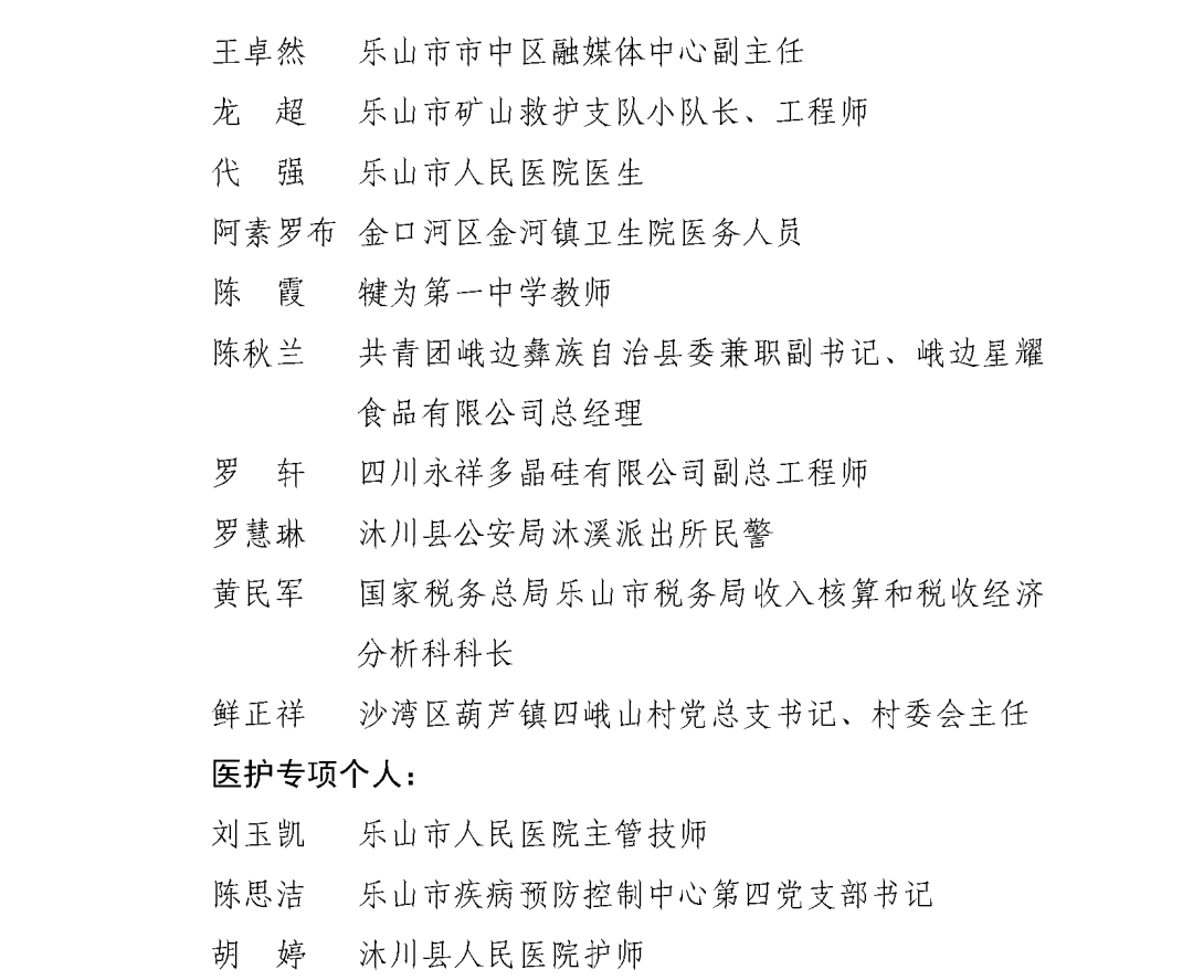 第三届“践行十爱·德耀嘉州”——“乐山市向上向善好青年”名单(共15名,按姓氏笔画排序)